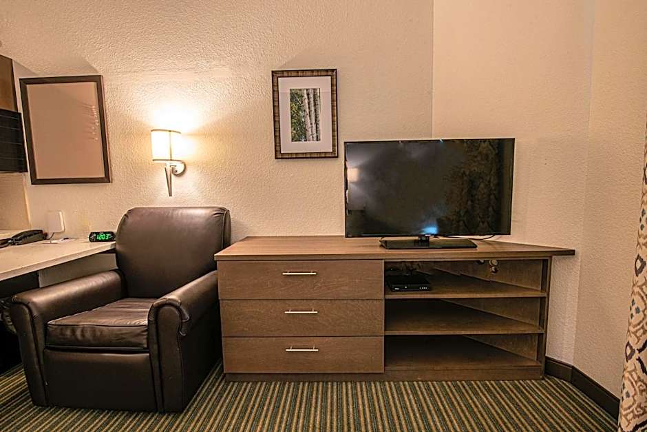This pet-friendly hotel boasts reviews, ensuring that you'll have a comfortable and enjoyable stay. The hotel offers a wide range of amenities to cater to all your needs, including free parking, a 24-hour front desk, and complimentary Wi-Fi. If you're feeling lucky, you can even try your hand at the on-site casino. After a long day of exploring, unwind in the hot tub/jacuzzi or get in a workout at the fitness center. The spacious and modern rooms feature a fully equipped kitchenette, perfect for preparing your own meals.